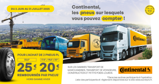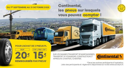 Promotion pneus poids lourds Continental Du 1er septembre au 31 octobre 2025, pour l’achat de 2 pneus poids lourds Continental, profitez […]