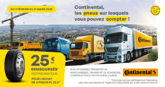 Du 1er octobre au 30 novembre, profitez de 25€ remboursés* pour l’achat de 4 pneus poids lourd Continental. Eurotyre accompagne […]