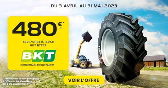Du 03 avril au 31 mai 2023, profitez du pneu agricole BKT 460/70R24TL 159A8 RT747 pour seulement 480€* H.T ! […]