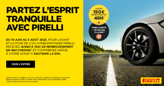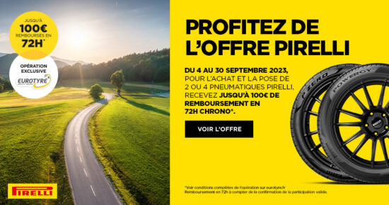 Du 4 au 30 septembre 2023, pour l’achat et la pose de 2 ou 4 pneumatiques Pirelli, recevez jusqu’à 100€ […]